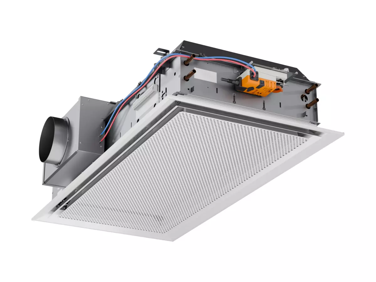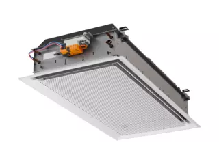 The face plate of REACT Parasol Zenith is always flush, i.e. always in line with the suspended ceiling, which gives a stylish and discreet installation. The double outlets means that there is no need to lower the face plate for high air flow rates, maximum capacity (induction) is still achieved.